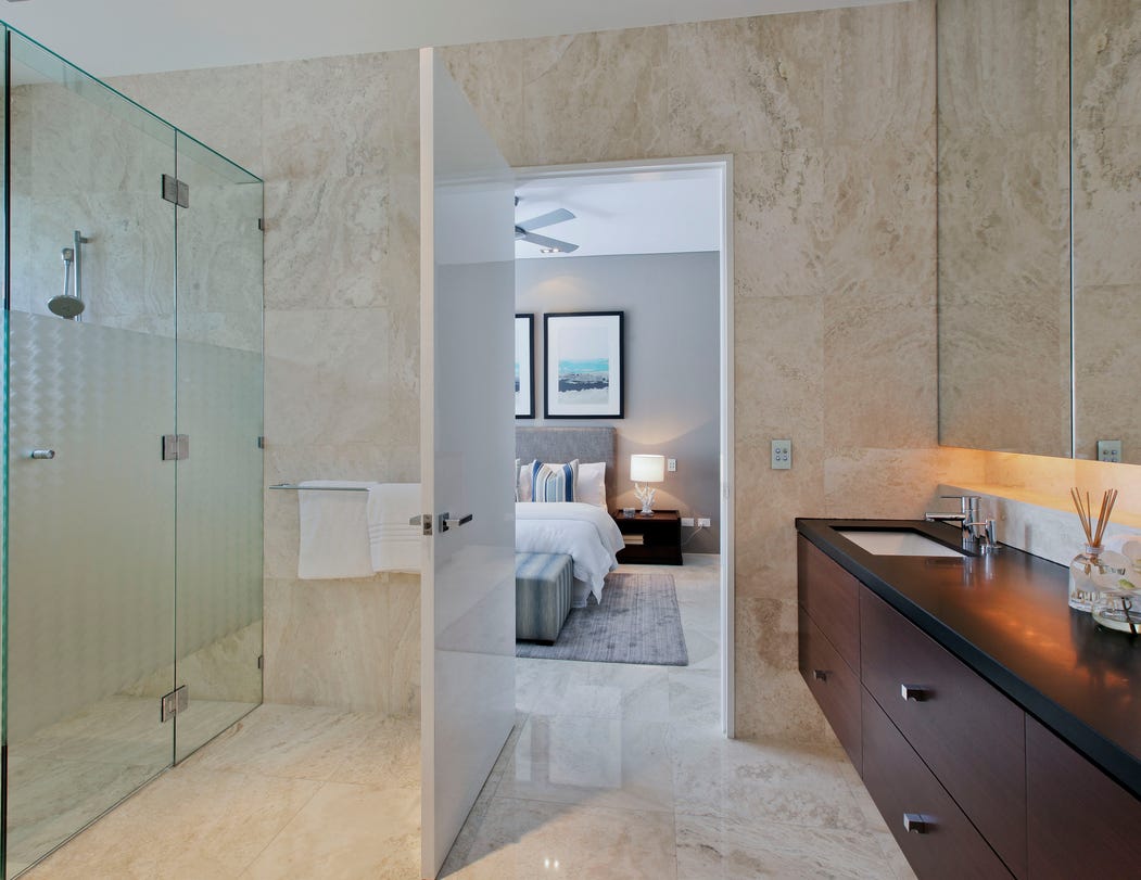 • Architecturally designed, high ceilings, Travertine marble floors throughout