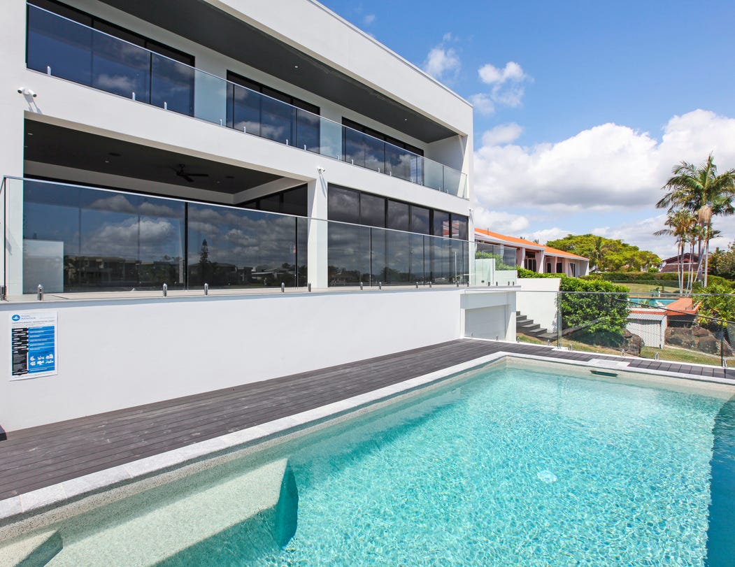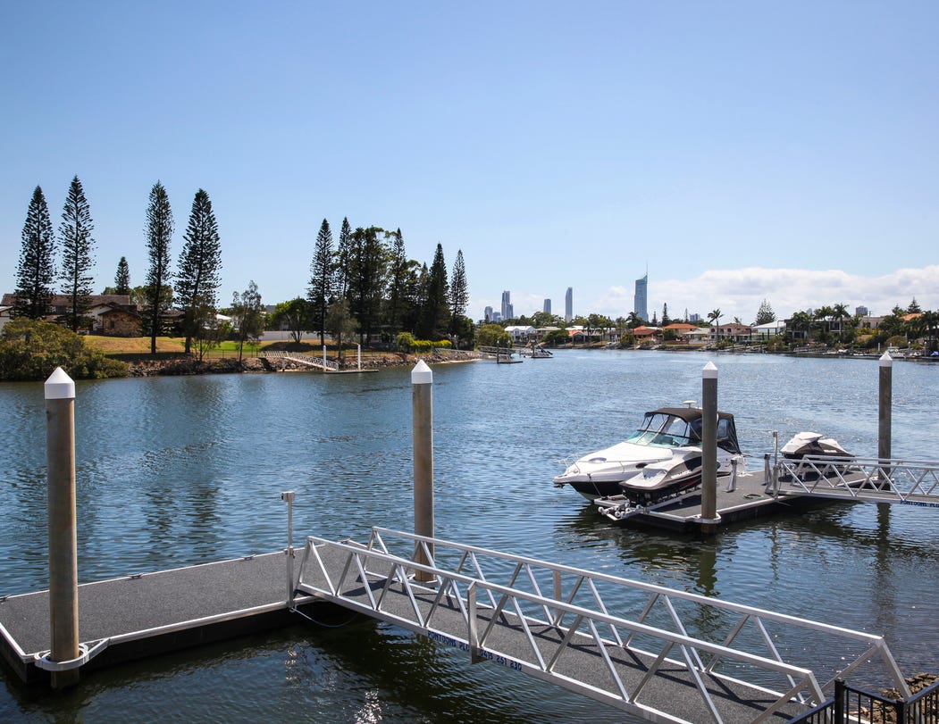 Gated for utmost privacy and security, this striking new masterpiece rises from a prime 1538m2 riverfront parcel where the wide waters of the Nerang River and iconic Surfers Paradise skyline impress beyond 20m of north-to-water frontage.