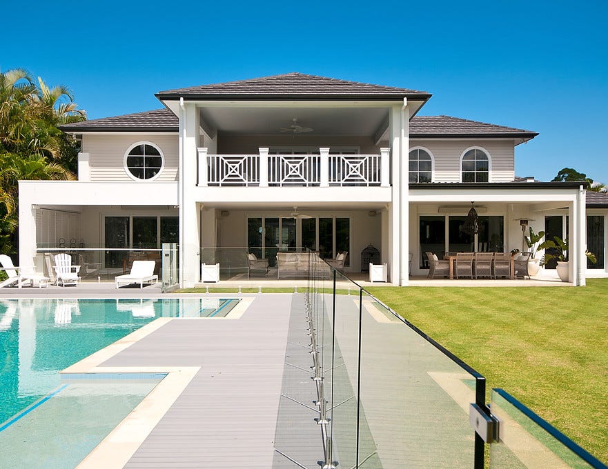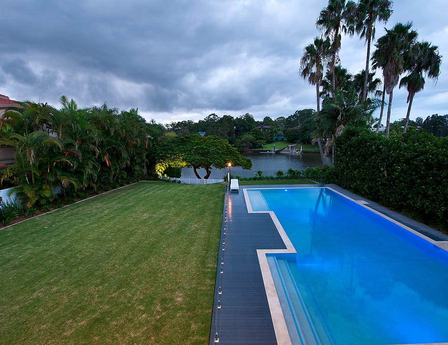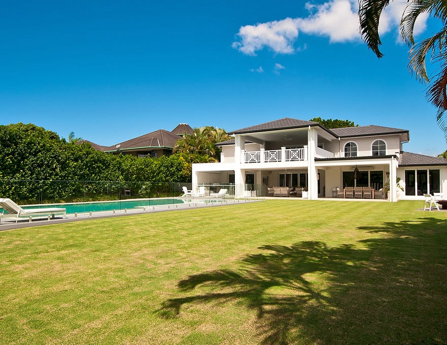 This near new architecturally designed Hamptons inspired residence is blissfully positioned north along the main river in a private and sought-after prestige enclave of Carrara. Built on a 4,000m2 main river block of land, this luxury home and landscaped grounds have been thoughtfully crafted sparing no expense.